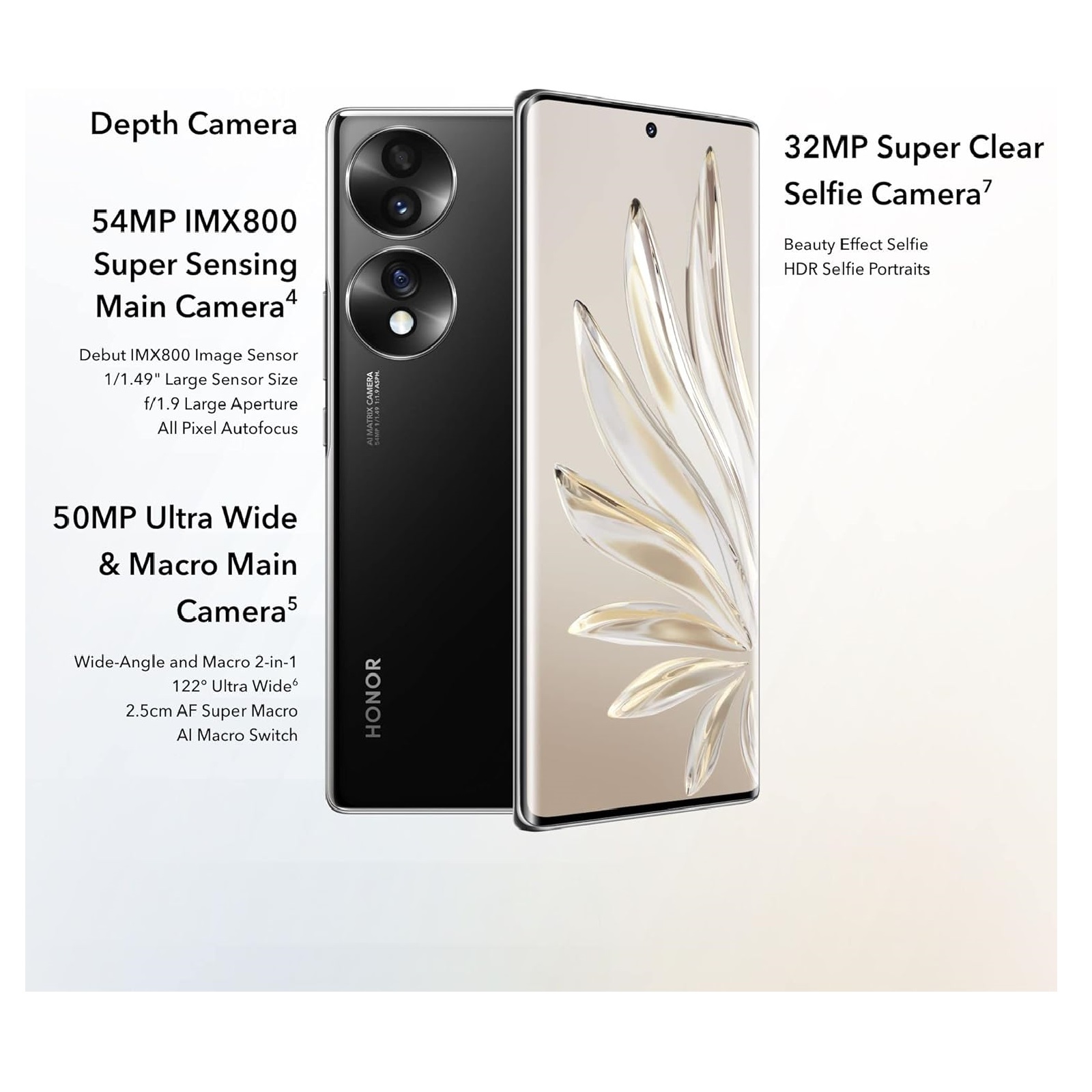 The standout feature is its 54MP Sony IMX800 main camera, designed to capture richer colors, stronger detail, and better night performance. Paired with a 50MP ultra-wide & macro lens, the Honor 70 becomes a creative tool for photography lovers. The 32MP selfie camera ensures sharp, vivid portraits and smooth video calls.